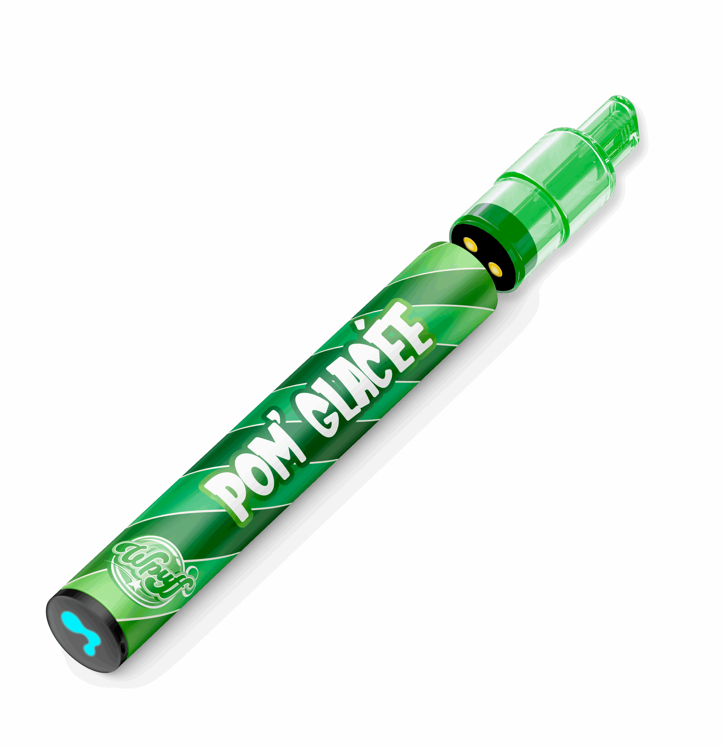 Le kit WPUFF 2.0 Pom’Glacée associe pomme verte et fraîcheur givrée. 800 puffs de vape intense en 0,9 % ou 1,7 % de nicotine, avec batterie compacte.